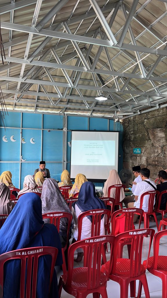 Kegiatan Isra Mi’raj yang dilaksanakan di aula TK Alam Terpadu Al Ghifari bersama KH. Jajang Aisyul Muzakki, Lc., M.Pd.I dengan Tema “Meneladani perjalanan Suci Isra Mi’raj dalam mendidik generasi Qur’ani”